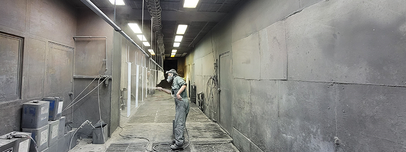 さらに表面の錆発生を防止し、製品の保護性・付着性を高めて表面を美しく仕上げる目的で、板金加工の溶接や仕上げ跡などの凹凸を平滑にするサンドブラスト・サンドペーパー研磨・パテ処理などを行う。